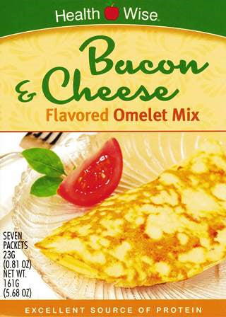 Best By 12 2025; Omelet Bacon and Cheese Flavored Mix by Healthwise